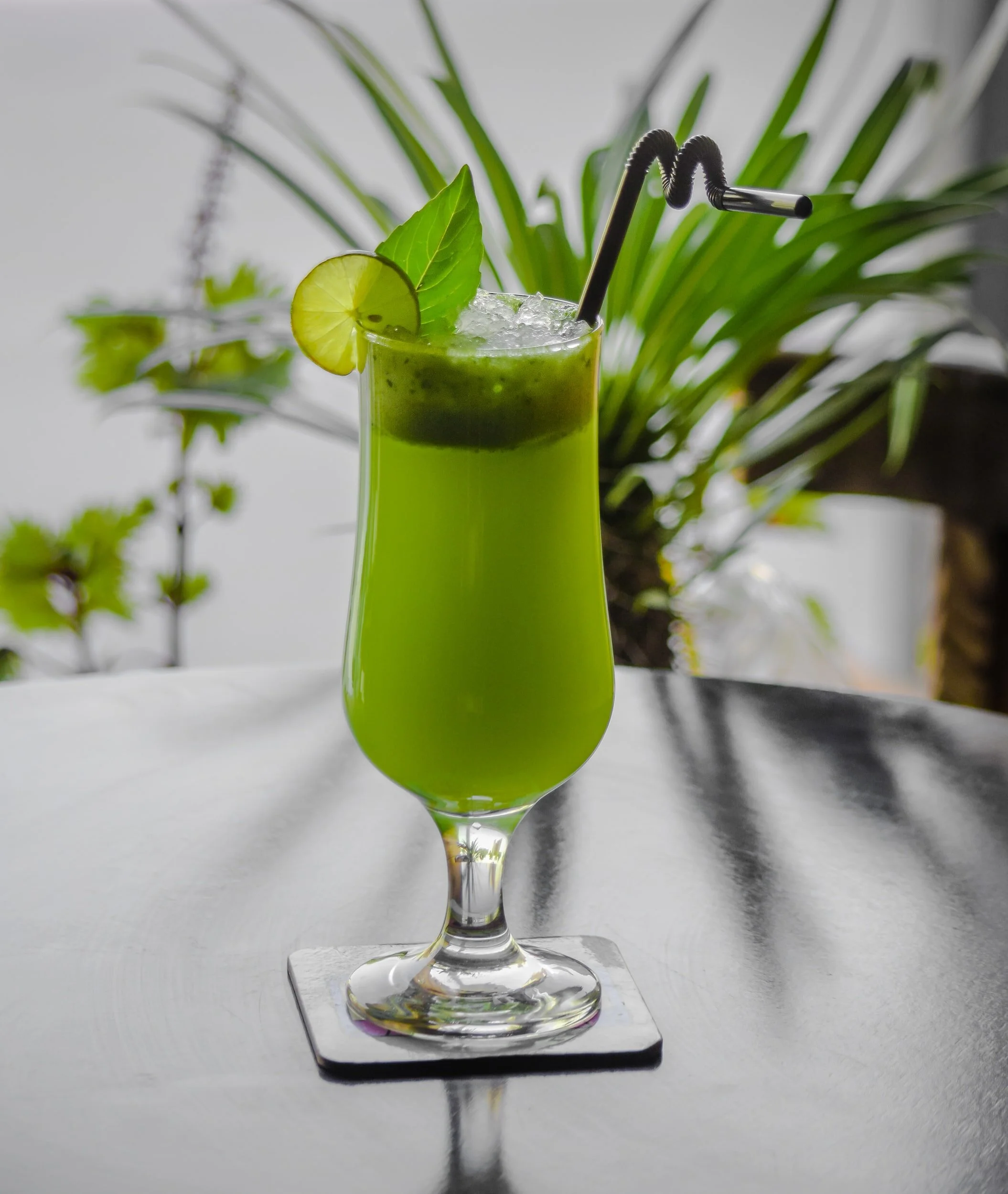 Blend together a handful of spinach, 1 green apple, a slice of fresh ginger, 1 tablespoon of chia seeds, and a cup of unsweetened almond milk. This smoothie is packed with fiber and antioxidants that support detoxification.